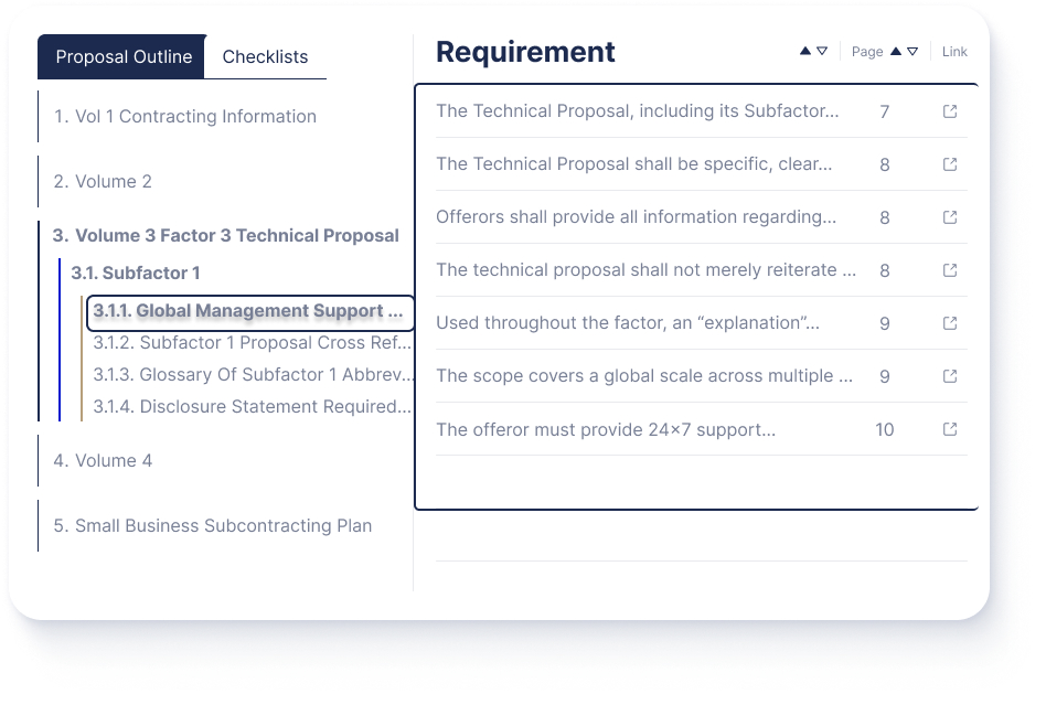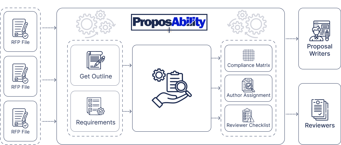 Proposability™ helps you shred RFPs into requirements and assign them to outline sections. Easily generate outlines, compliance matrices, and author and reviewer checklists from a single source.
